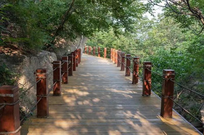 山上有两种路,一种是铺满鹅卵石的山间小路,还有一种是木制小路,各有特色。