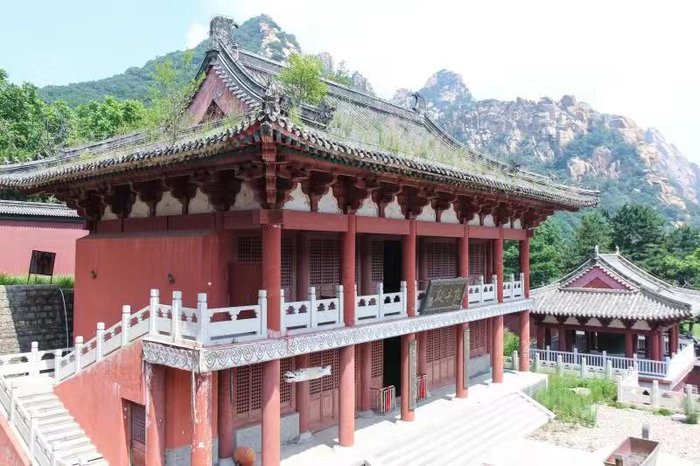 站在山海禅寺外,已然被他的雄伟庄严所吸引。不禁屏住呼吸,墙上的红漆掉落了,青石也不再紧密堆砌,但建筑依然耸立。