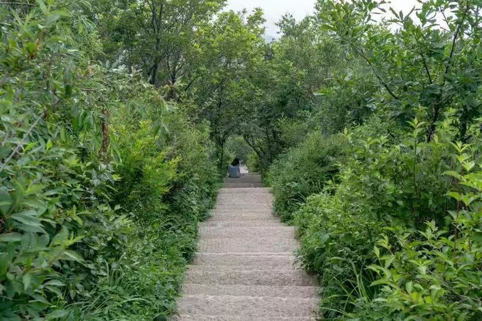 此时,可以缓步穿行,可以坐在台阶上看枝叶随风摇曳。