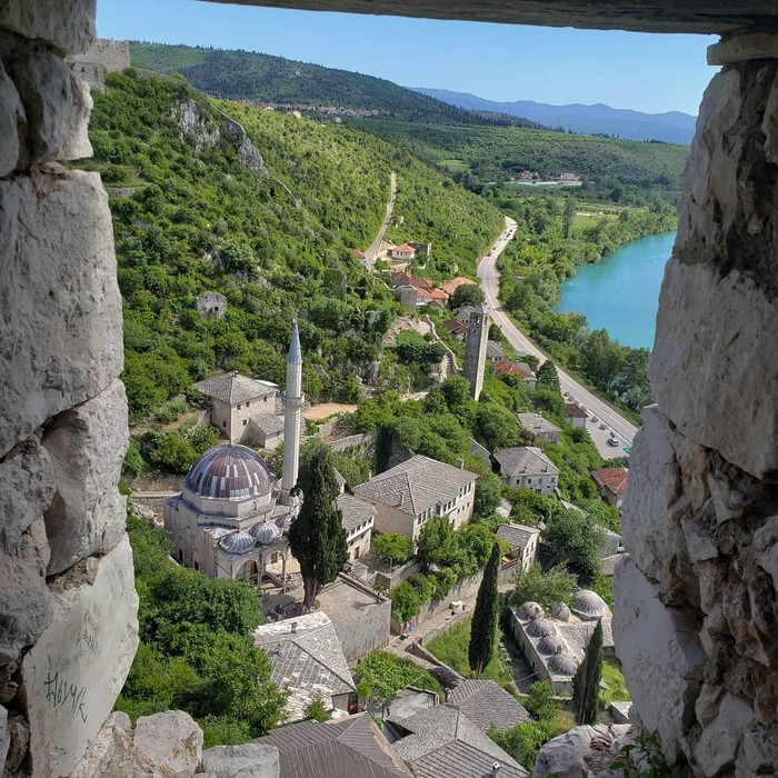 中午天气炎热不宜在外,那么傍晚的老城就会给你彻底的惊喜——暖黄的灯光点缀下满街土耳其式的建筑和纪念品,老城就像一个复古版的伊斯坦布尔,非常精致而浪漫。另外,清真寺 Koski Mehmed Paša Mosque 的尖塔是俯瞰莫斯塔尔的最佳位置,老城、老桥和内雷特瓦河尽收眼底,不要错过啦!