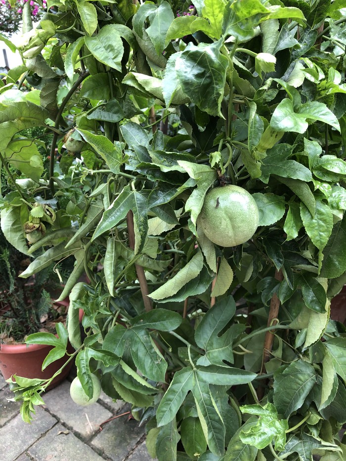 不晓得是什么植物,后来叶子君和我说这家伙是还没成熟的百香果。。。