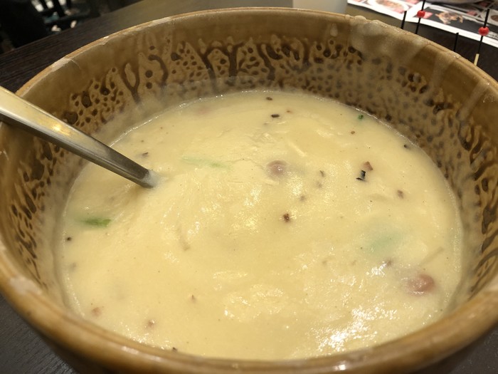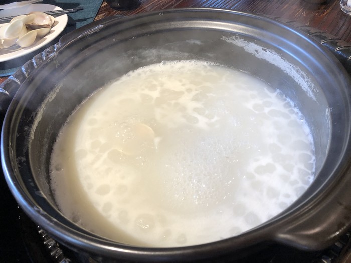 这家毋米粥也是小伙伴推荐的,所谓的毋米粥就是没有米,锅底是米汤,然后丢各种食材下去煮,跟吃火锅差不多。他家的牛肉很滑很好吃,先煮肉和海鲜,最后煮菜,味道特别好。