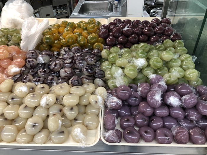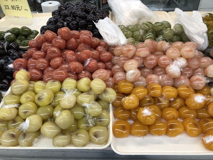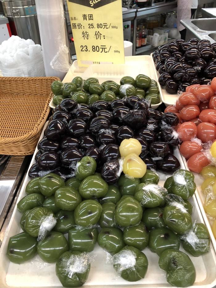 晚上去超市溜达消食,看到了五颜六色的团子,想来是到了吃青团的季节了(之前去苏州进水楼吃的青团念念不忘,后续游记会提到)。