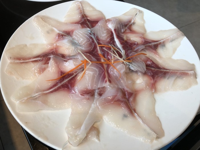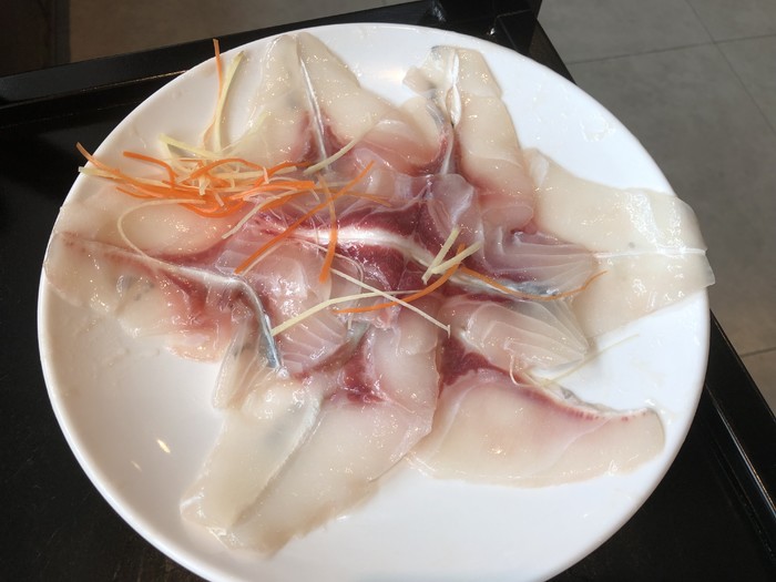去的是年年有渔这家,因为不是节假日,没有排队,赶上有团购,直接点了一份,两个人吃不完。有鱼生,炸鱼骨,鱼粥,鱼皮种类挺多的。鱼生的吃法其实看自己,老板会给一小壶油,推荐的吃法是鱼生加上各种小菜,(小菜很多,有萝卜泡菜、芝麻、洋葱、胡萝卜、蒜片、姜丝、柠檬草、陈皮、炸花生、炸山芋丝、泡椒、咸菜等)淋上油一口吃下去,淋油的目的是让口感变得顺滑,反正淋油我有点腻,不过胜在鱼够新鲜。配菜很好吃,我们又要了一份,老板人很好,还一直让我们慢慢吃。