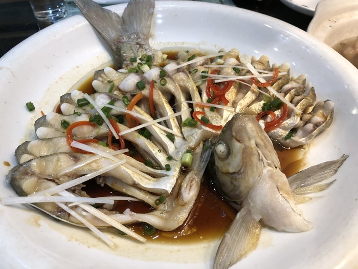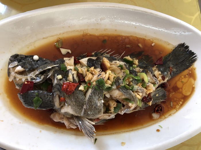 清蒸黑头鱼 黑头鱼是当地的特色,肉很紧实