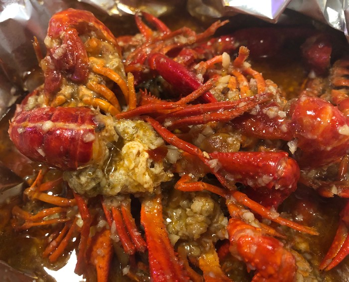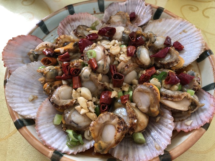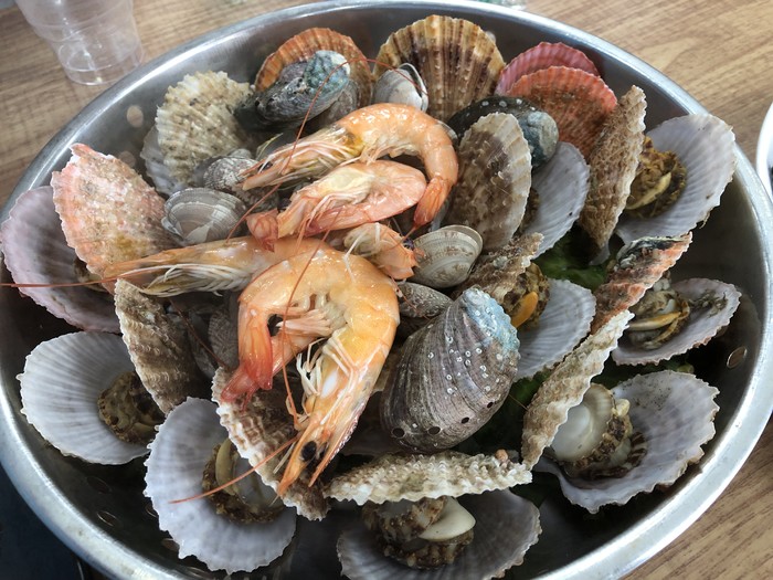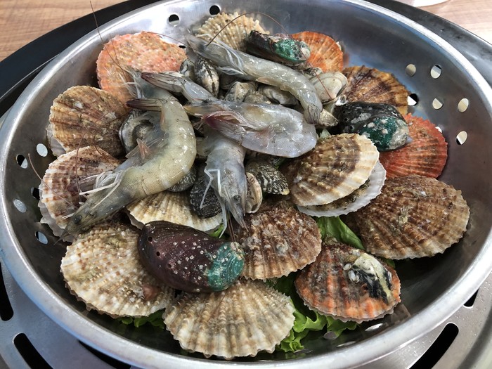 从海洋馆直奔台东步行街,买完海鲜找了家海鲜加工,直接吃起