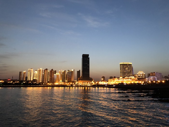 今天是整段旅行中第二次坐飞机的日子~ 武汉直飞青岛,到青岛已经5点多了,直接机场大巴到中山路(幸好上飞机前在机场嗑了一盒小胡鸭鸭脖,否则要饿晕了)