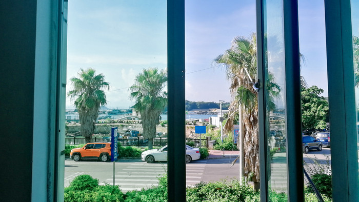 定的酒店在港口,房间窗户外面也有一片平静的大海,刚进去就有三只猫员工接待我,虽然它们都消极怠工,但谁叫它们萌呢,算了算了。