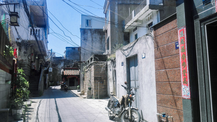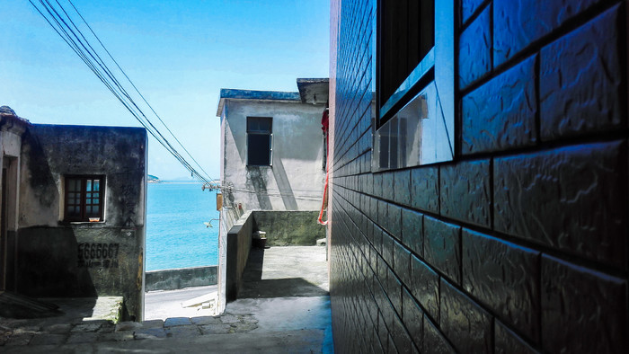 看起来的确普普通通的,甚至一点也不上镜,拍出来的照片不吸引人,却唯独吸引了我,小巷子并不是甚麽都没有的小巷子,里面有居民的日常生活,有菜市场,还有儿时的那种小卖铺,当你发现一个路口突然有了风,毫无疑问,这一定是海的入口。