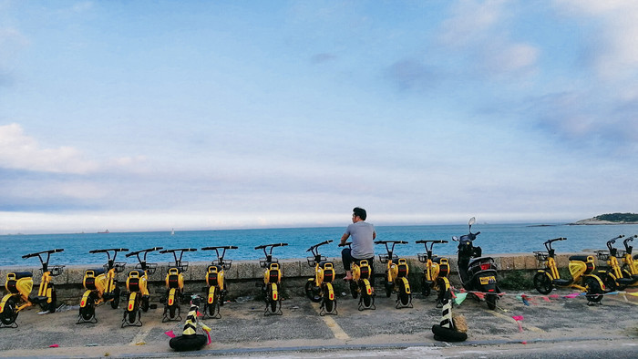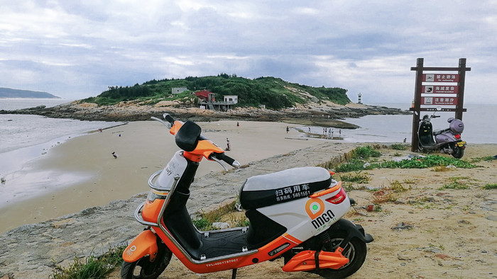 骑车去苏峰山,有环海路,被称为小 垦丁。太阳升起来便太晒,于是我们7点就出发了,天已经大亮了,应该更早起床的,17公里左右,我们骑着全速只能30码的电动车差不多40分钟骑到了环海路,很多人比我们先到了,本来是想去拍无人的环海路,看来要5点出发才行。