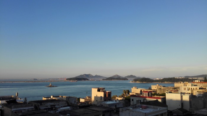 从巷子口的标牌 文公祠 走上去,爬上几分钟便到了顶,文公祠上面可以看 东山岛的全景,此时才发现是三面环海,但由于岛的尽头被景区风动石被占据了,也不能自己用脚去走上一圈。