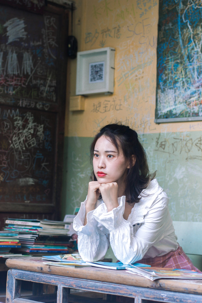 在顶街的主马路上偶遇一间小店,小店布置的格外复古,是儿时在学校上课的感觉,一眼就喜欢上了,还放了老板拍的照片,因为同是摄影师,所以顺其自然的就加了老板的微信。老板叫小西,主业在 东山岛拍旅拍照,还经营了两家民宿。
