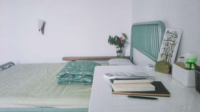 房间里都是小 西和她女儿的小心思,两间房布置的很不一样,我住的这件充满了儿时的童趣,而另一间则是很简洁的ins风格,墙壁是绿色的,连放的书和小配件都颇有心思的采用绿色,小西是个爱看书的人,两家民宿都摆满了书,喜欢看书尽管找小西借,小西老板人非常好~