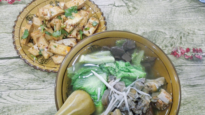几步路的隔壁有一家鸭面+卤菜的店铺:卤此纯真。不太爱吃鸭,倒是鲜美,更喜欢买上一份卤菜,回去边看电视边吃起来,肉类有点贵,买上一份 千叶豆腐一份笋,倒也够了。