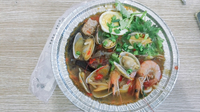 花甲粉里的份量真是非常足够,又是虾又是花甲,老板还是放的剁椒,辣是辣却没有花甲的香味,比不上 武汉只有两颗花甲的花甲粉。