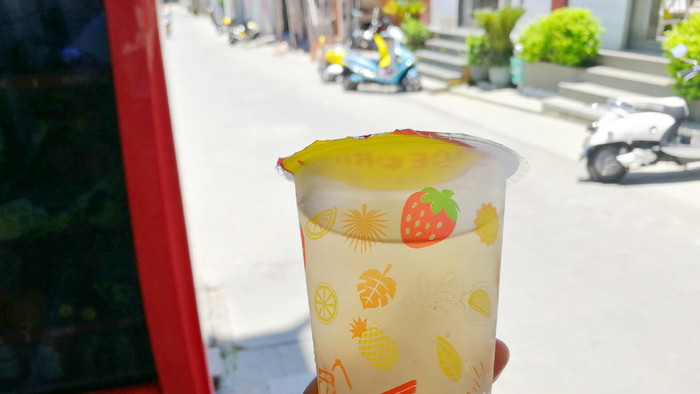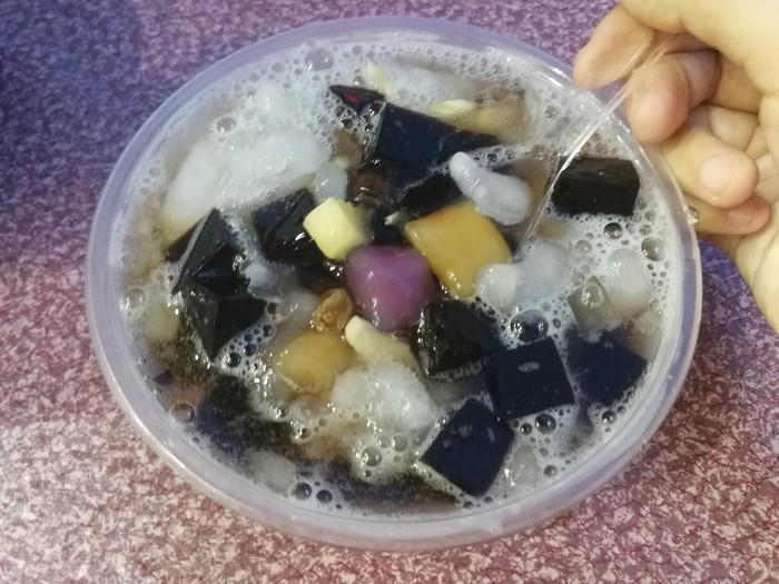 有一次走迷路了,实在热的不行,就买了码头边的一碗海石花,居然10元一杯,出乎意料的贵,已经拿起来了又不好意思放下,味道却只是像冰 水里面加了薄荷,还以为是冰粉呢!