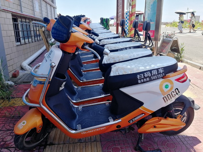 我们找酒店老板租了电动车,80元24小时,也可以按小时出租,10元一小时,街头还有可以扫码开锁的电动车,貌似不需要押金,价格应该差不多。