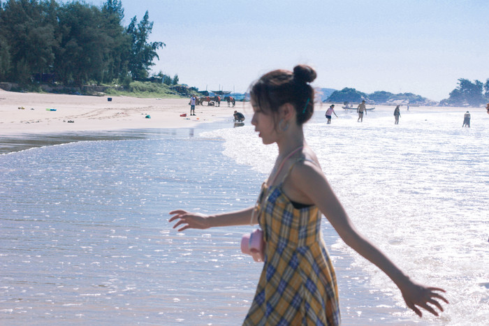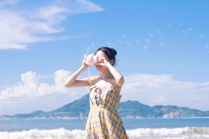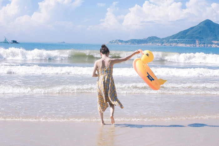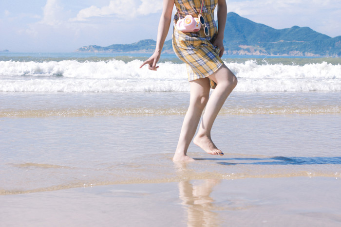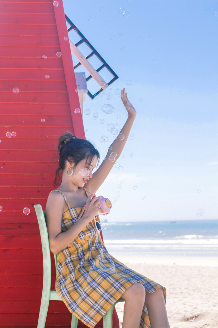 海边果然是一个拍照的好地方呀,上午8-9点之间来拍照是最好的,此时阳光还不太大,没有晒到头顶,光线却不微弱,一定要满满的涂上防晒霜,不然即使是早上在海滩玩,回去之后也会发现被晒黑很多。