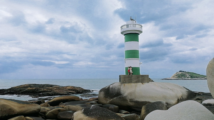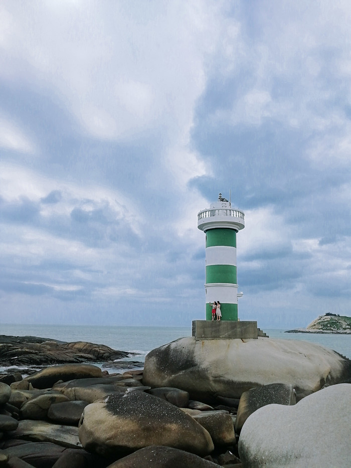 退潮的时候去南屿,南门湾对面的那个小岛,只能在退潮的几个小时里上去,沙滩会浮出来,是完全的一个荒岛,岛上除了一个小庙和一个 灯塔什么也没有,去到岛的另一端才能靠近灯塔,而去的路上全是石头,可谓翻越重重险境才能到达世界的边缘啊。