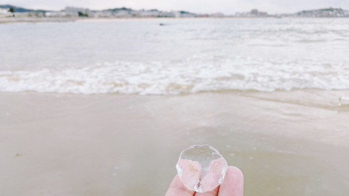 沙滩上搁浅着许多还没长成形的小水母,希望它们下辈子可以自由在大海里翱翔吧。