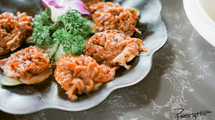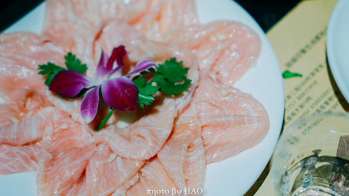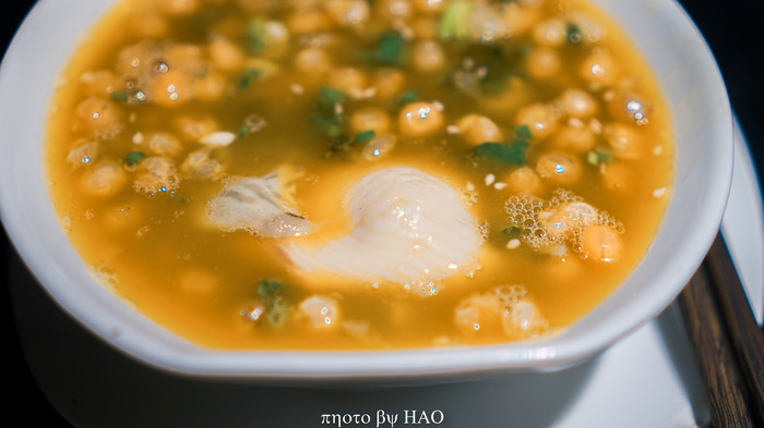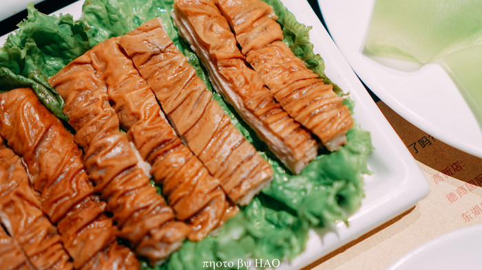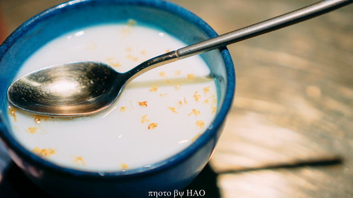 入座后先来一碗招牌的桂花酸奶。金黄的桂花酱错落有致的淋在乳白的酸奶上,光是看着都美醉了。入口香滑顺口,带有桂花淡淡的香甜。不管是餐前还是餐后都是超棒的甜品。