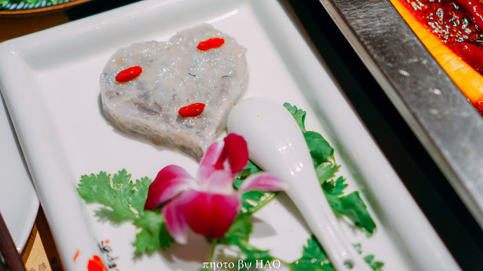 招牌的鹅肠,上桌前店员会亲自端到面前用剪刀剪成方便食用的长短。看着一整根新鲜的鹅肠被剪短,我的筷子已经迫不及待的想要夹住它在滚烫的牛油锅里“七上八下”了。