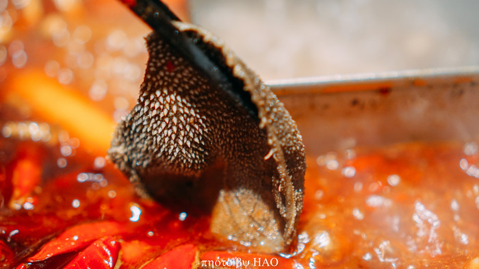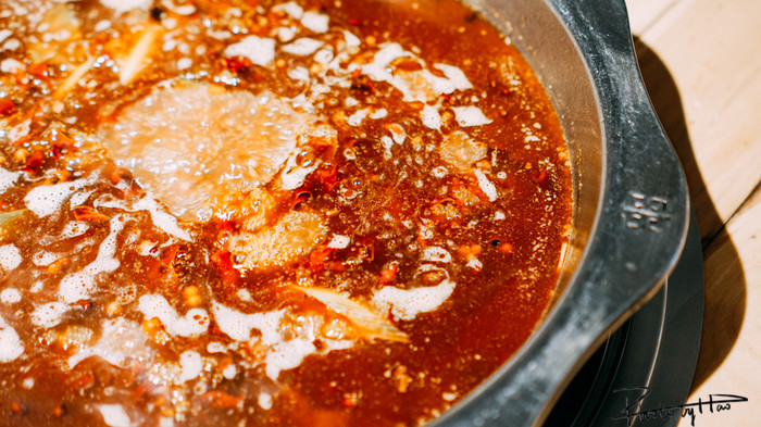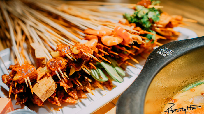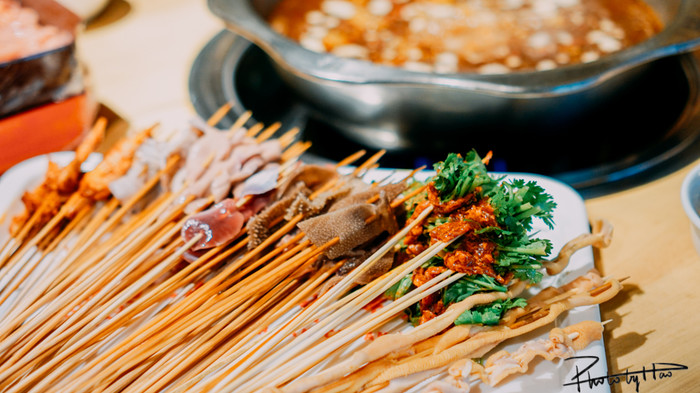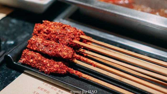 特色的牛肉串也是超级经验。裹上的辣椒面在锅里不会被煮掉,而且牛肉煮了很久一点也没有肉质变老味道变咸。
