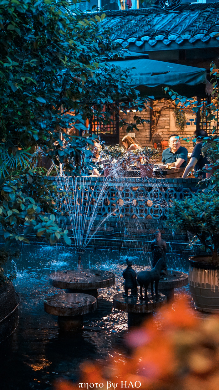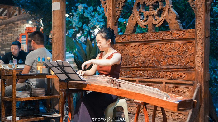 傍晚时分到达,一进门,未先见到大院真容,就已先听到悠扬动人的古筝绕梁。