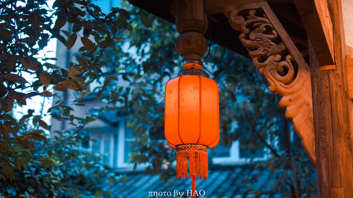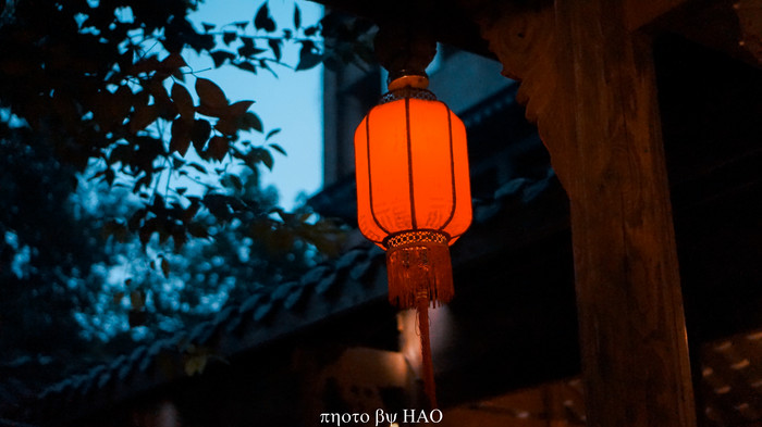 屋檐青砖下的红灯笼静静的点亮一个角落。
