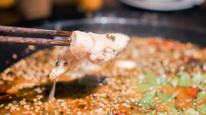 等不了多久,一大锅煮好的鱼就端上桌了。光看着卖相就让我食欲大开忍不住动筷子了。