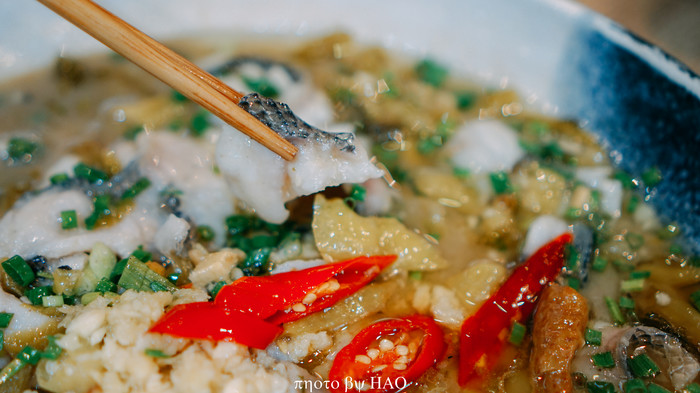 谁说店里都是普通家常菜,这里的酸菜鱼是我的最爱。鱼选择的是乌鱼(个人感觉),鱼皮十分的富含胶质和软糯,鱼片刺少。泡在加了野山椒的酸菜汤里,单吃或配饭都是格外的搭。酸菜品种选的很好,汤底没有过于酸到让人五官扭曲,是一种温和舒适的醇厚酸味和回味的泡椒辣味。