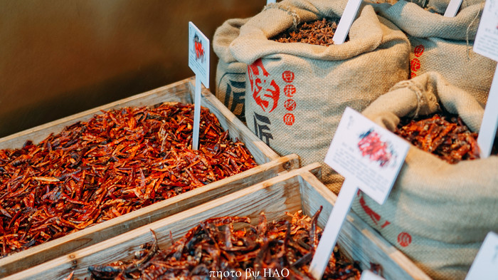 店门口摆满了各种辣椒和香料的样品展示,对我这种喜欢吃辣却没有怎么了解过的人算是一个小小的科普。