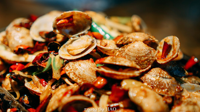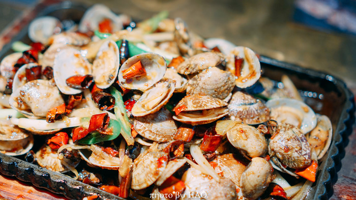 铁板花甲是传统川辣味,花甲吐沙很干净,肉质新鲜肥厚,一不小心就可以在面前叠起一座小山。