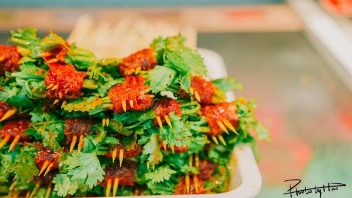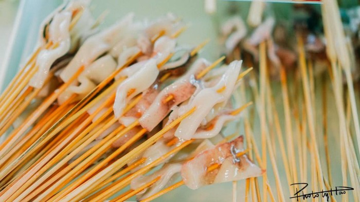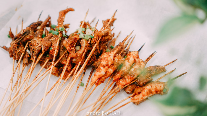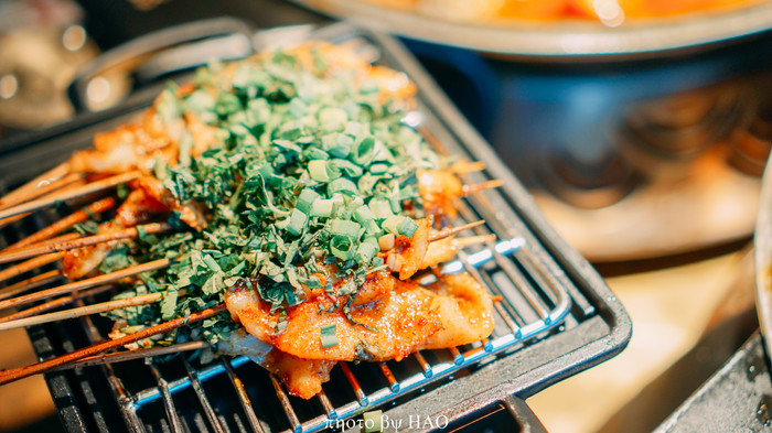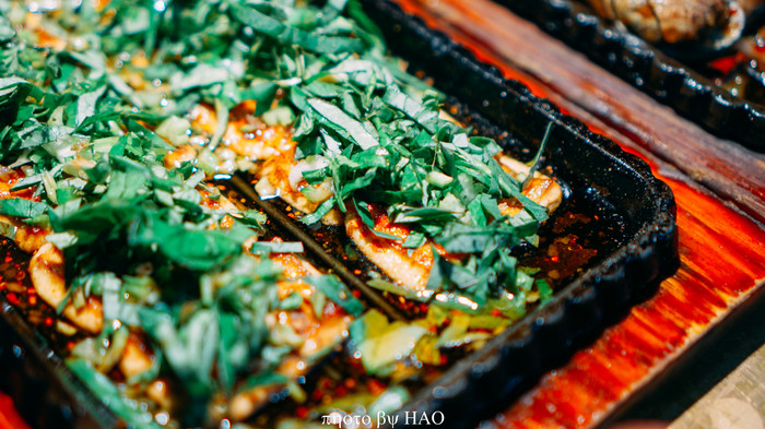 藿香烤鱼片则是一道十分 成功的特色烧烤。不同于传统烤串的烤牛肉,五花肉,鸭舌等食材,而是选择鱼片。精细处理的鱼片没有任何的刺,完全可以爽快的撸。点睛之笔是撒上的一大把藿香碎,入口就是满嘴藿香独特的清香,之后鲜嫩的鱼片则是停不下来的好吃。就算是怕鱼的也可以享受到这种大口吃鱼肉的畅快。