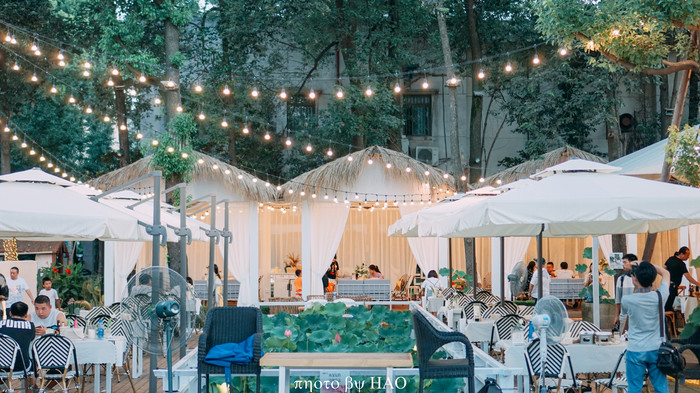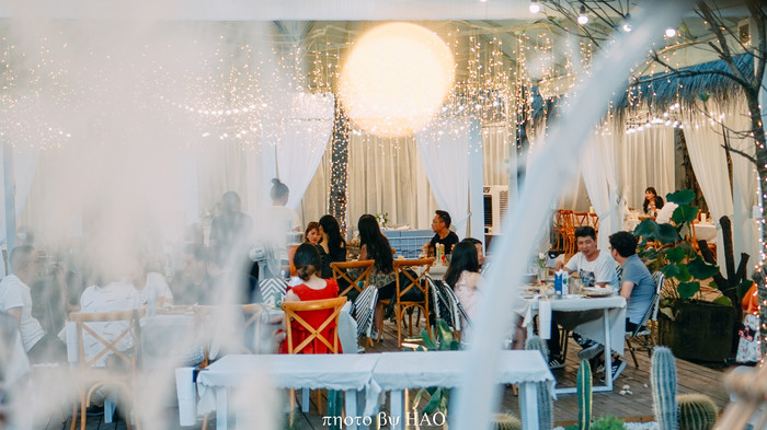 店里全露天,面积很大,但桌数并不算多,每桌之间的间隔距离还是比较大,完全没有拥挤感和嘈杂感。朋友聚会,恋人约会,家庭享 乐都是很好的选择。