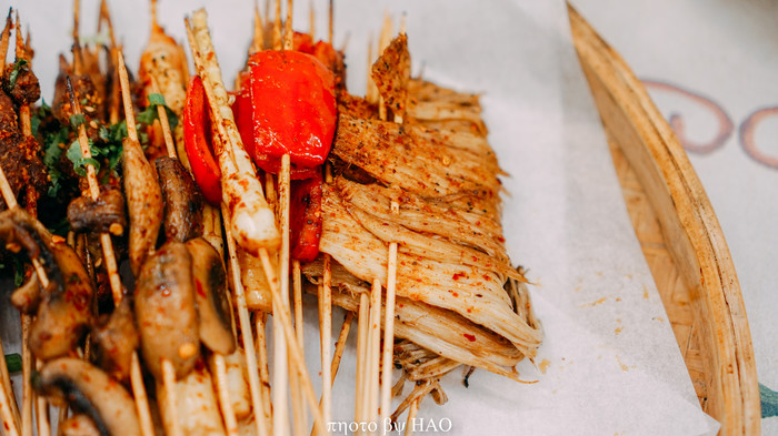 拿上满满一盘的菜品,然后一边嬉笑聊天一边撸着串。