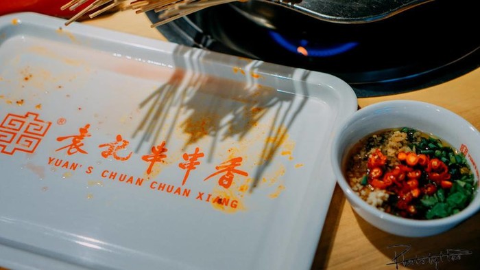 蘸料选择有油碟和干碟,超级推荐大家两个都拿。干碟真的太香了,搭配相对清淡的串,好吃的想要找店家单独买几包回家。