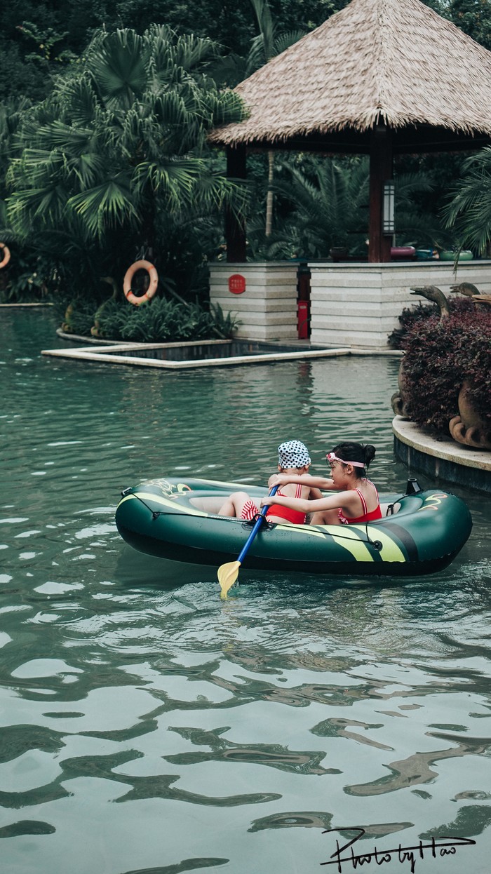 最大的几个温泉池非常好玩,除了基础设施的滑梯之外,还可以租充气小船在里面玩。