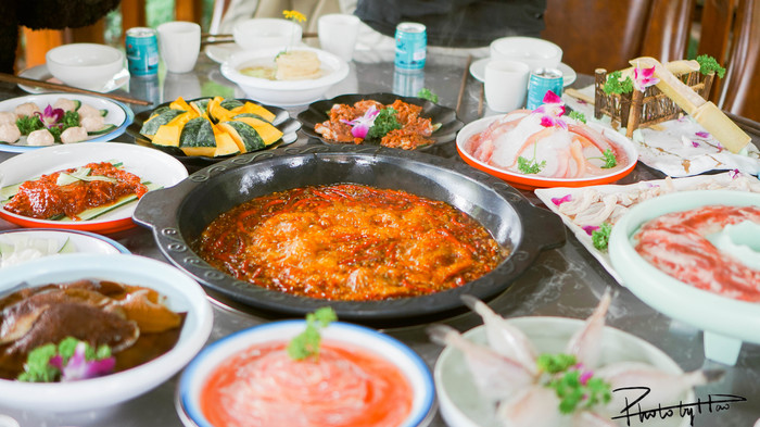 酒店里除了丰富精致的中餐外,还有特别符合四川人民喜好的就是——森林火锅。