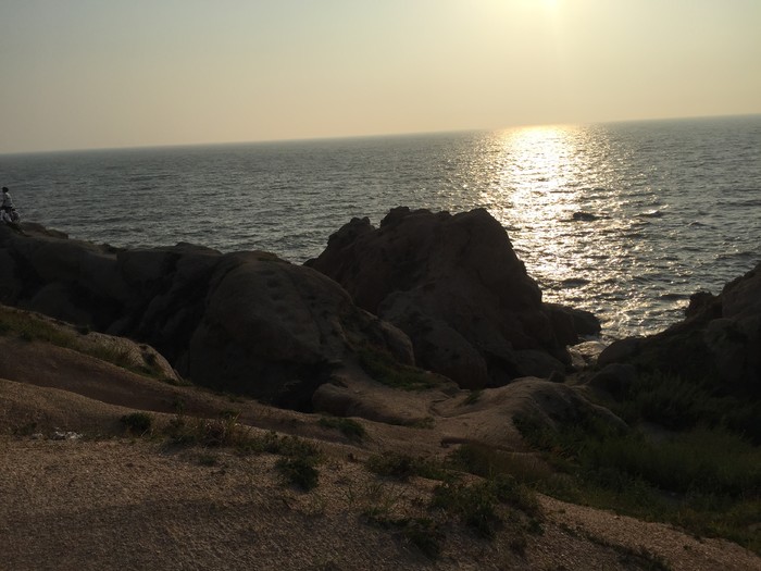 一个人在这静静的看大海,真的很舒服,觉得自己的家乡虽然小,但是也很好,就像自己的生活,简单,但是快乐。先骑车往里走走,不然自行车要到时间了。