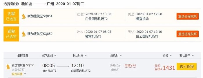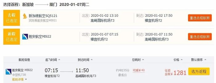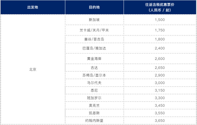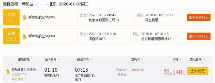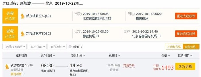 北京=新加坡,券后含税往返1.3K,出行日期挺多,可以按自己的出行计划来;