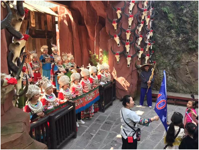 夯吾苗寨位于湘西自治州古丈县墨戎镇,民风淳朴热情好客,保存着世界上最大的苗鼓。我们来到寨子门口时,苗民们身着盛装,浑身都佩戴苗族的特色饰品,受到了他们最盛大的欢迎仪式“拦门酒”还有对山歌,爸爸妈妈都对这个非常地感兴趣,一直不断地录视频拍照片,一起载歌载舞。