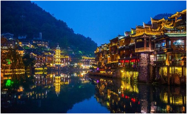 虽说凤凰古城已有商业气息,但还是保留很多原始的风貌。极具苗族建筑特色的吊脚楼古建筑群让爸妈大呼神奇,晚上虹桥上的沱江夜景和白天的沱江泛舟都带来了不同的视觉享受。万名塔、乌龙山风景区、商业街都是很舒服,很适合慢慢走走逛逛。在返程之前,给爸妈穿上苗族服装在沱江边上拍了一张照片留念,希望时光能慢些再慢些,让我可以陪爸妈走过更多的风景。