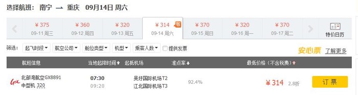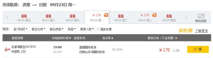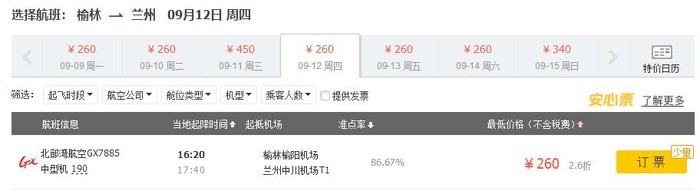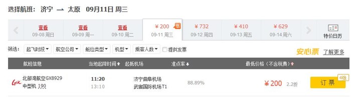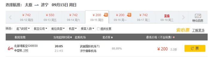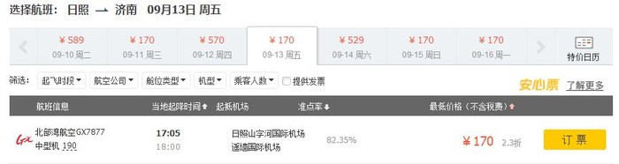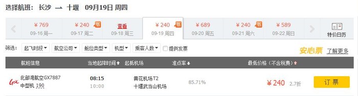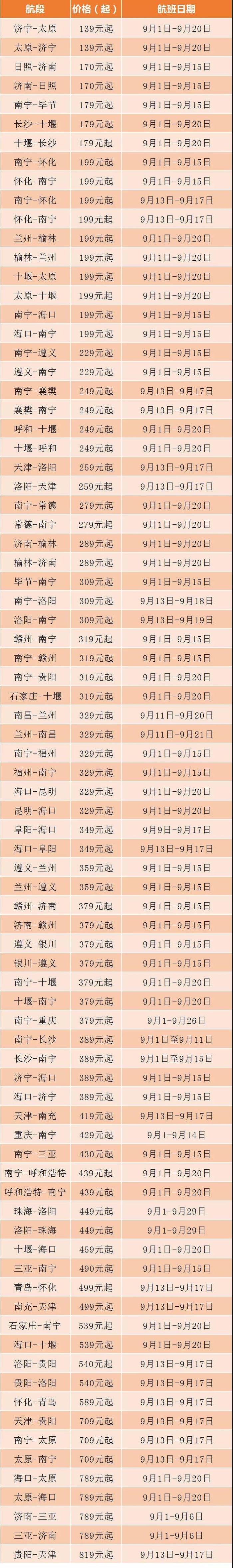 实测了部分航线(大部分航线有中秋期间的票,9月多日期有票,下面实测图上日期仅作参考):