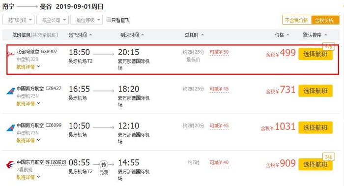 南宁=曼谷,券后单程含税449元;券后含税往返801元;