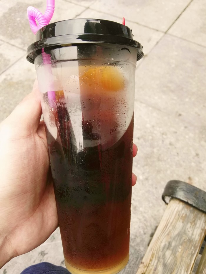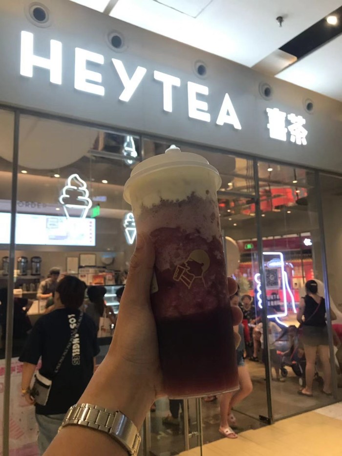 吃饱后,就去附近的南开大悦城找喜茶(HEYTEA)店。经营了差不多两年多,喜茶都现在还需要排队才能买得到,我们等了将近40分钟才拿到饮料。奶茶的珍珠是不错的,不会太甜。水果系列我们点了人气的多肉葡萄,蛮好喝,价钱就差不多是星巴克的价钱。
