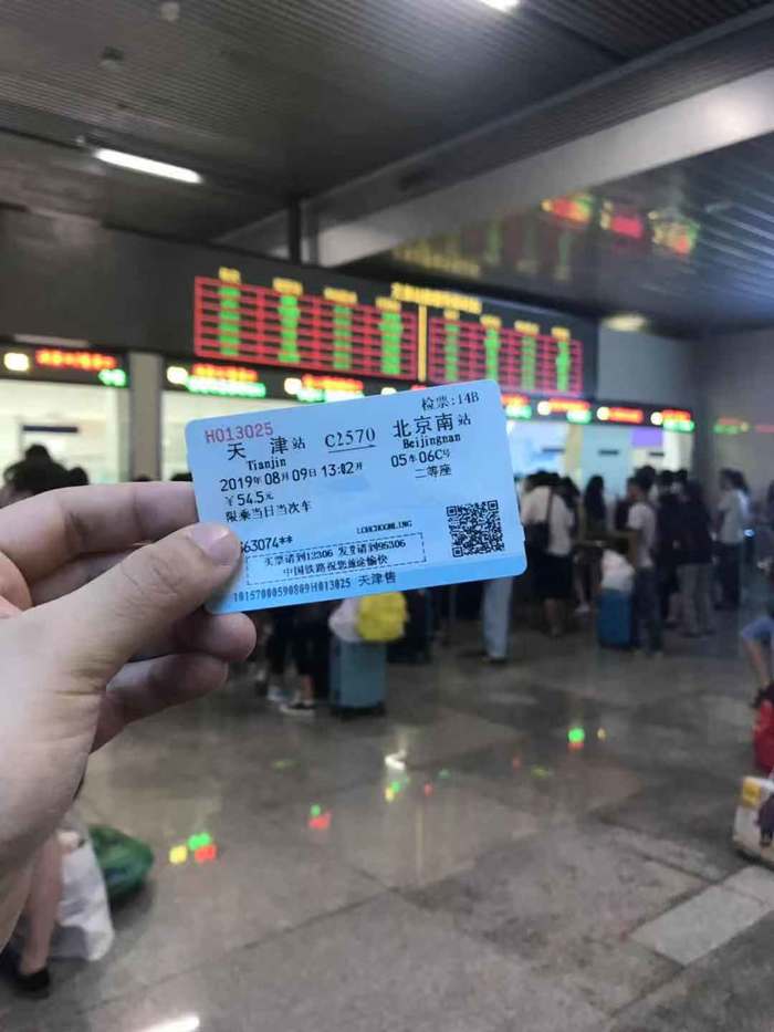 吃饱后,我们就搭地铁去天津站转搭城际列车去北京南站,价钱是RMB54.50一位。需要用到护照/中国身份证才能购买车票。车票进站和出站都要用到,不要进站了就丢掉车票,出站时会面对问题的。天津站去北京南站大约是半小时。京津城际铁(子弹列车)350km/h真的开到很快,而且很稳。