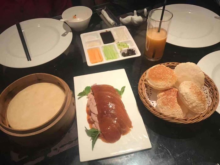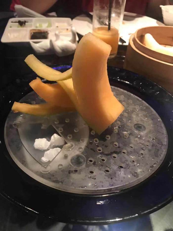 荣获黑珍珠三钻的大董餐厅,食物方面真的不错吃,尤其是扬州炒饭,配料很多。“酥不腻”烤鸭是招牌菜式,大董烤鸭主要是吃鸭的皮,真的很脆,吃下去好像猪油渣的味道,赞!包的皮(春卷)就有点厚,除了这,其它的都不错。水果(哈密瓜也是很甜)~