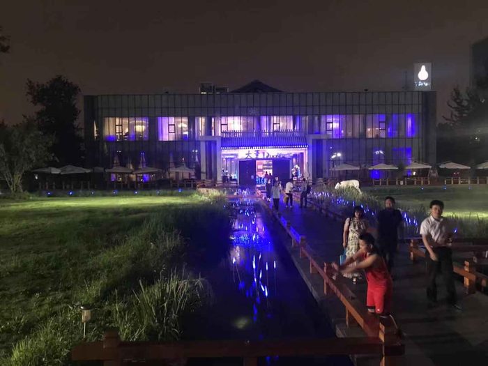 过后,我们就步行到地铁站去大董烤鸭吃晚餐。我们去的是北京市朝阳区那儿的大董烤鸭餐馆,去到那儿要等一小时左右才能用餐,等号码时,店外有摆放一些饮料给顾客享用~大董店外的布置很美,环境优雅,而且还有一些马的雕像~