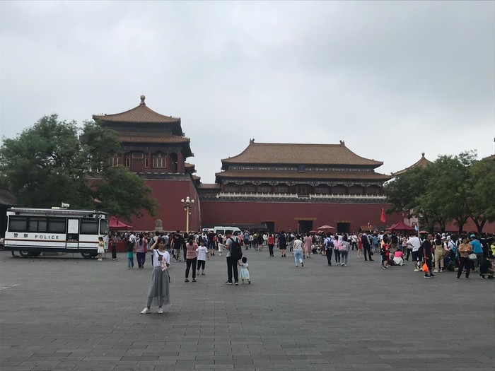 第二天早上,我们大约七点半就出门了。乘搭地铁直接到天安门广场,要前往天安门广场需要过安检,只要不带危险物品如:刀,刀片,危险化学物品等等就没什么事了~不管什么时刻去,天安门广场都是很多游客。我们在街边档口买了一些零食和小蛋糕吃了就走进去故宫。